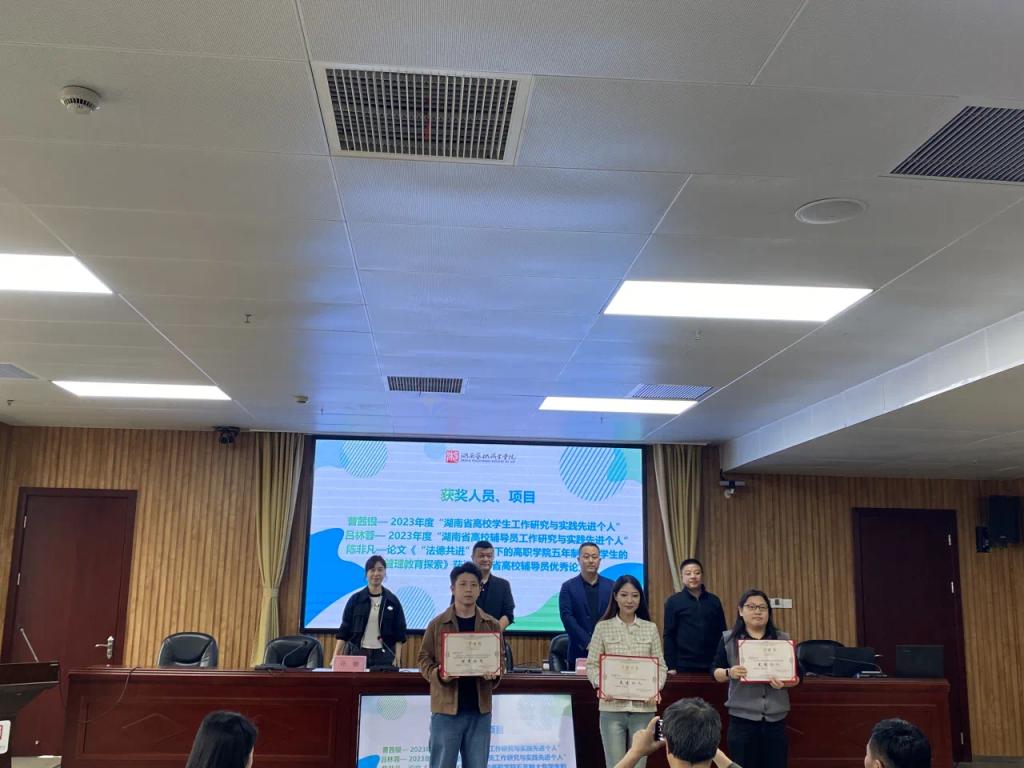 会议表彰了2024年新利指定网站官网网页版入口辅导员素质能力大赛获奖个人和集体,以及湖南省高校辅导员及学生工作研究与实践先进个人和优秀论文获得者。