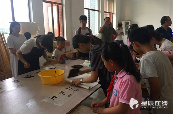 来自大同星沙二小3—6年级的小学生、老师和部分学生家长参加了本期活动。工作人员带领大家参观了陶瓷修复室、青铜器修复室,并一一详细介绍了修复工具、设备以及材料;在书画修复室,文物修护与保护班的学生们向大家演示了书画装裱托画心的过程;随后,大家了解了湖南地方剧种——花鼓戏的过去、现在和未来。参加活动的学生和家长们纷纷表示,本次活动特别有意义。一位家长说自己和孩子一起看了《我在故宫修文物》,刚巧新利指定网站官网网页版入口有这样的活动,就赶紧带孩子来参加了,没想到在湖南本土也有文物修复专业,希望艺术职业学院今后多多举办这样的活动,传承传统文化。