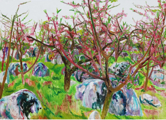 蔡国胜大龙洞河谷 60x80cm 布面油画2019年