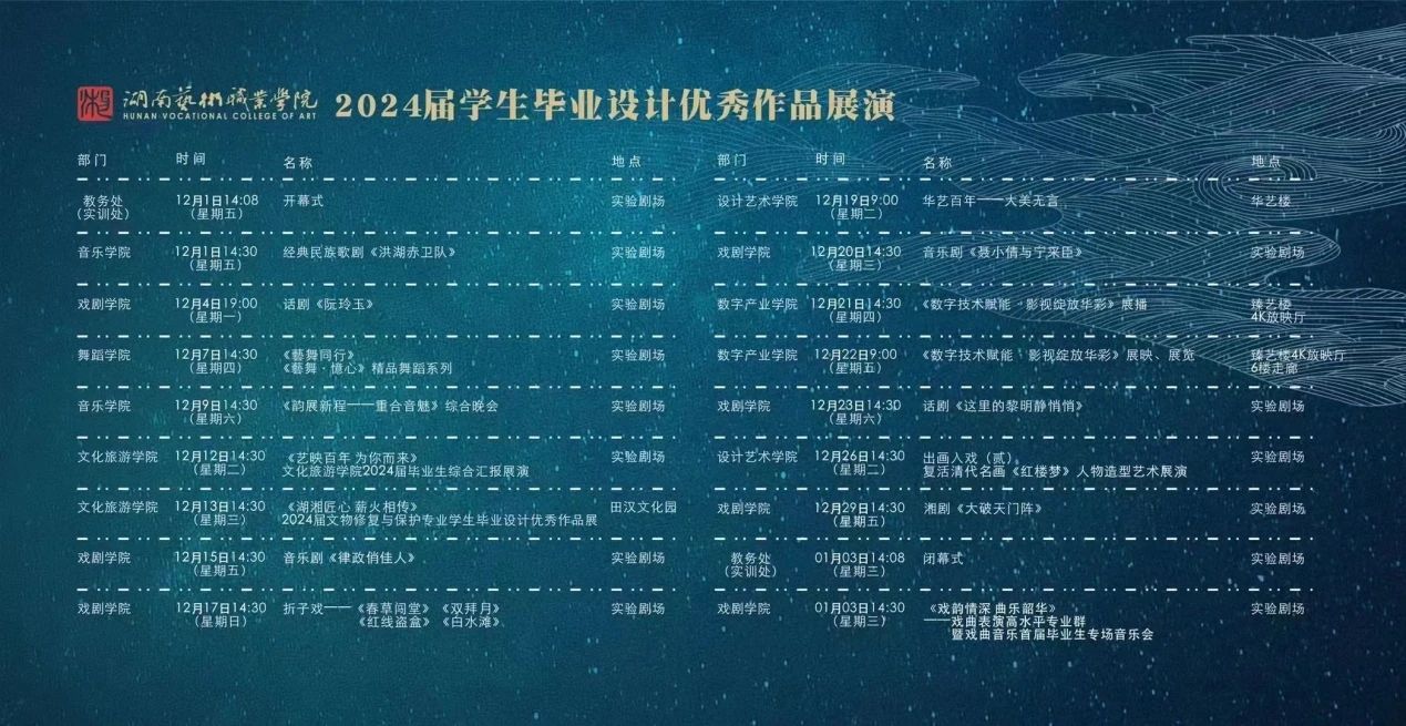 据悉,从12月1日开始一直到2024年1月3日,新利指定网站官网网页版入口将举办为期一个月的毕业展演活动。来自戏剧、音乐、舞蹈、设计艺术、数字产业、文化旅游六大专业学院的1800余名毕业生将带来12台专题演出和4个作品展览。热烈欢迎社会各界关心支持学校发展的领导、嘉宾、朋友们前来观摩指导!