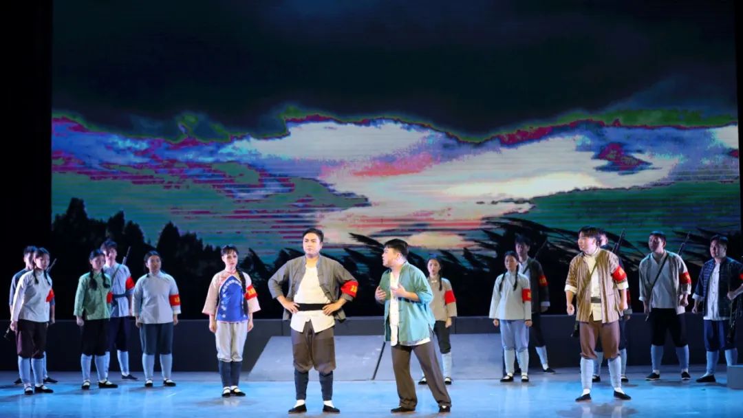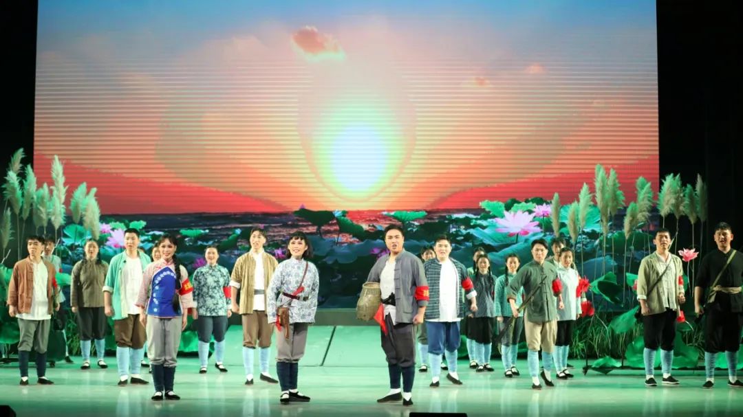 随后,音乐学院毕业生们复排的经典民族歌剧《洪湖赤卫队》精彩上演。该剧讲述了第二次国内革命战争时期,湘鄂西洪湖地区赤卫队及工农红军与国民党反动派及“湖霸”开展革命斗争的传奇故事。歌剧经典的唱段、紧凑的节奏、悠扬的旋律,充满了坚定乐观的革命精神,凸显了共产党人坚定的革命信仰及其与老百姓的鱼水深情。