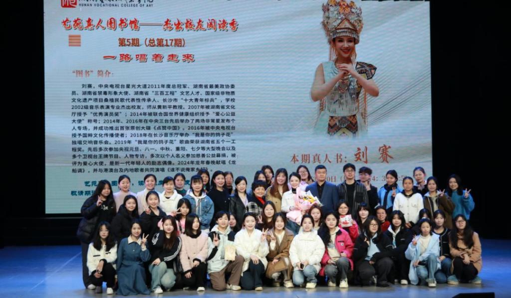 从湖艺毕业之后,刘赛考入了中国残疾人艺术团,在国内外各大重要活动中频频亮相,近年来更是在星光大道、央视春晚等万众瞩目的舞台收获了更广泛的关注。今天的刘赛,不仅是家喻户晓的优秀青年歌唱家,还是湖南最美政协人、省禁毒形象大使、省“三百工程”文艺人才,更是国家级非物质文化遗产项目桑植民歌的代表性传承人,并被联合国世界健康组织授予“爱心公益大使”称号。“民族音乐是我们的根和魂。”活动现场,应师生们的热情邀请,刘赛演唱了桑植民歌《三根丝线三尺长》和《谢谢你》的片段,精湛的演唱博得现场阵阵掌声与喝彩。
