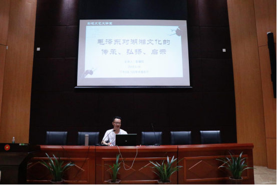 5月16日,影视系举办了题为《毛泽东对湖湘文化的传承、弘扬、启示》的讲座,讲座由彭朝阳教授主讲,该系主任戈力主持,全系师生200多人聆听了讲座。