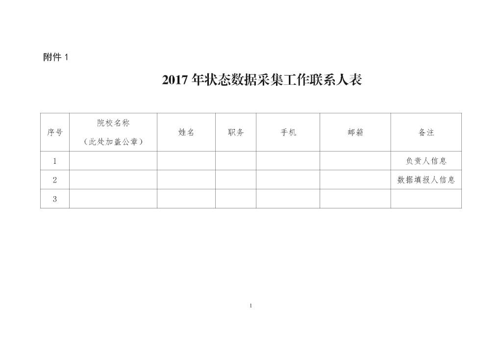 附件:1、2017年状态数据采集工作联系人表